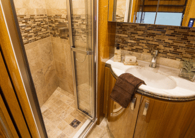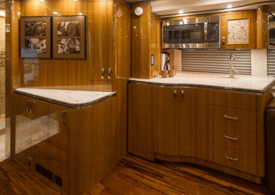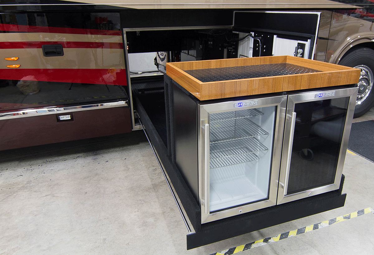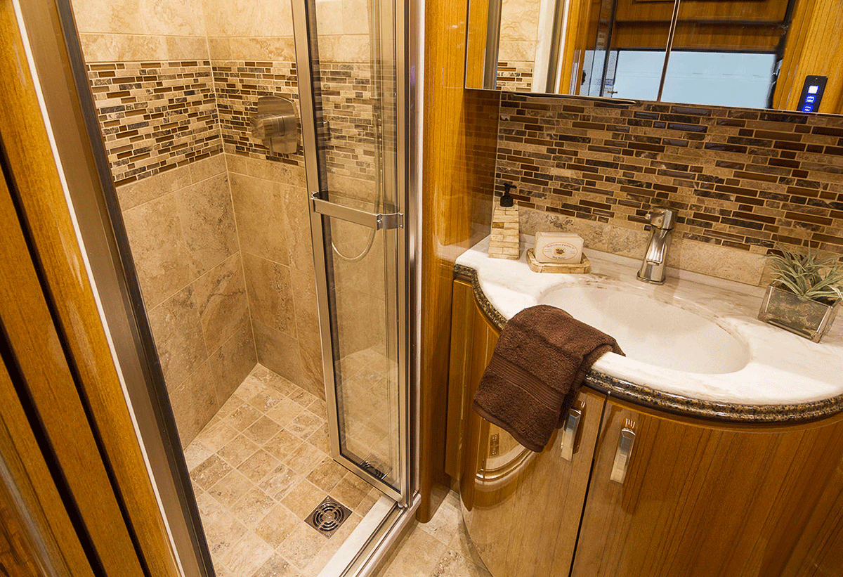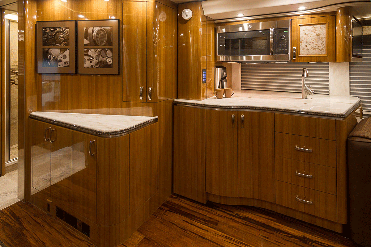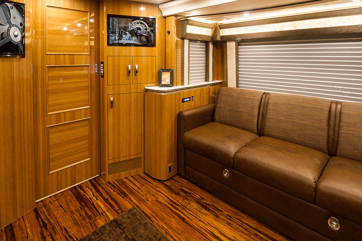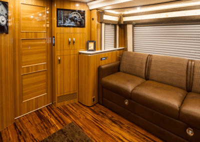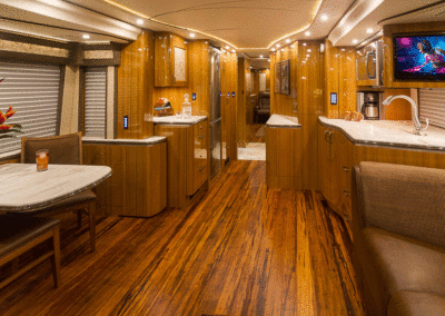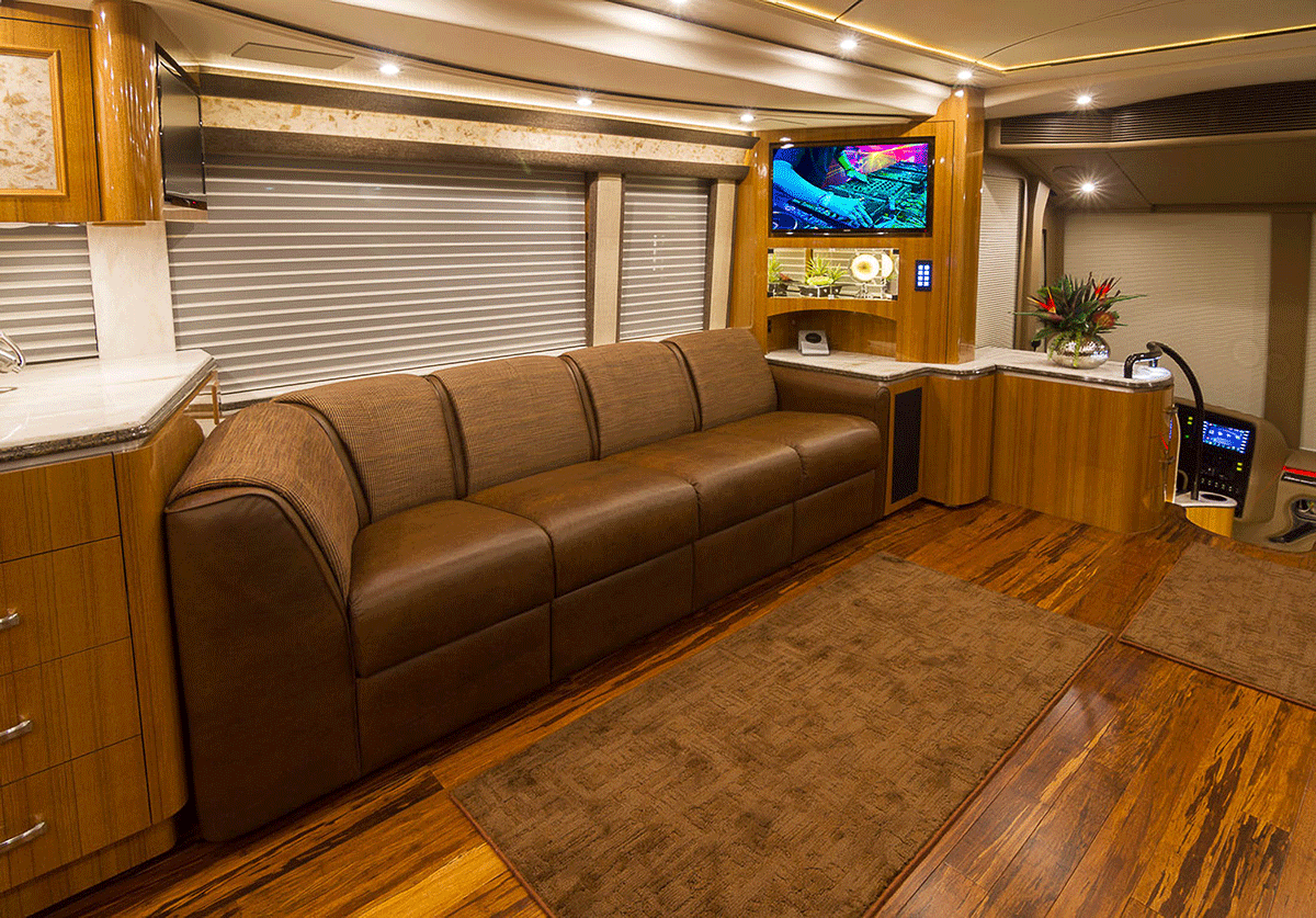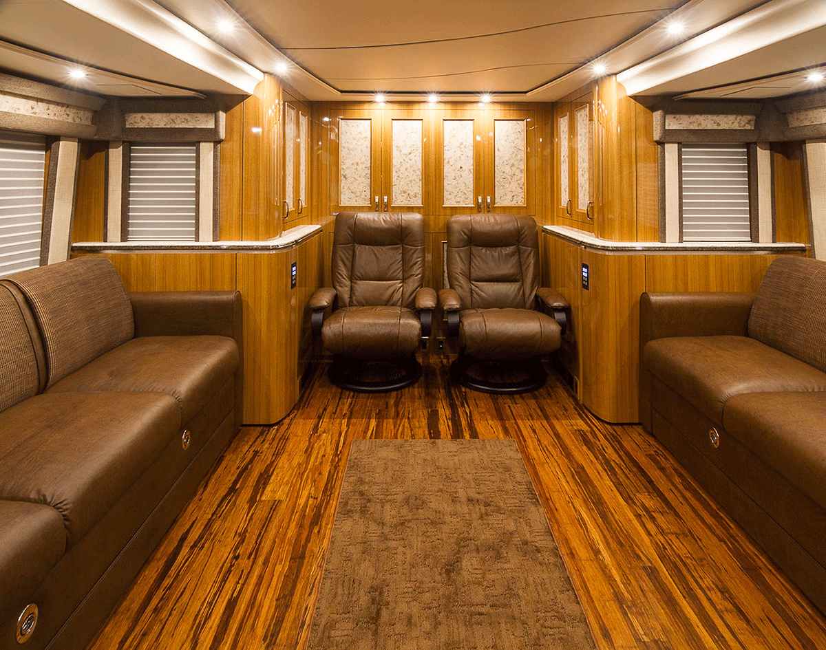 A true luxury executive suite on wheels. This 45-foot custom Prevost Marathon is fully appointed with everything you need for your Executive Team, clients or colleague to travel in style. Great for hospitality, meeting space or onsite support to an event. For the most discerning executive and their guests.