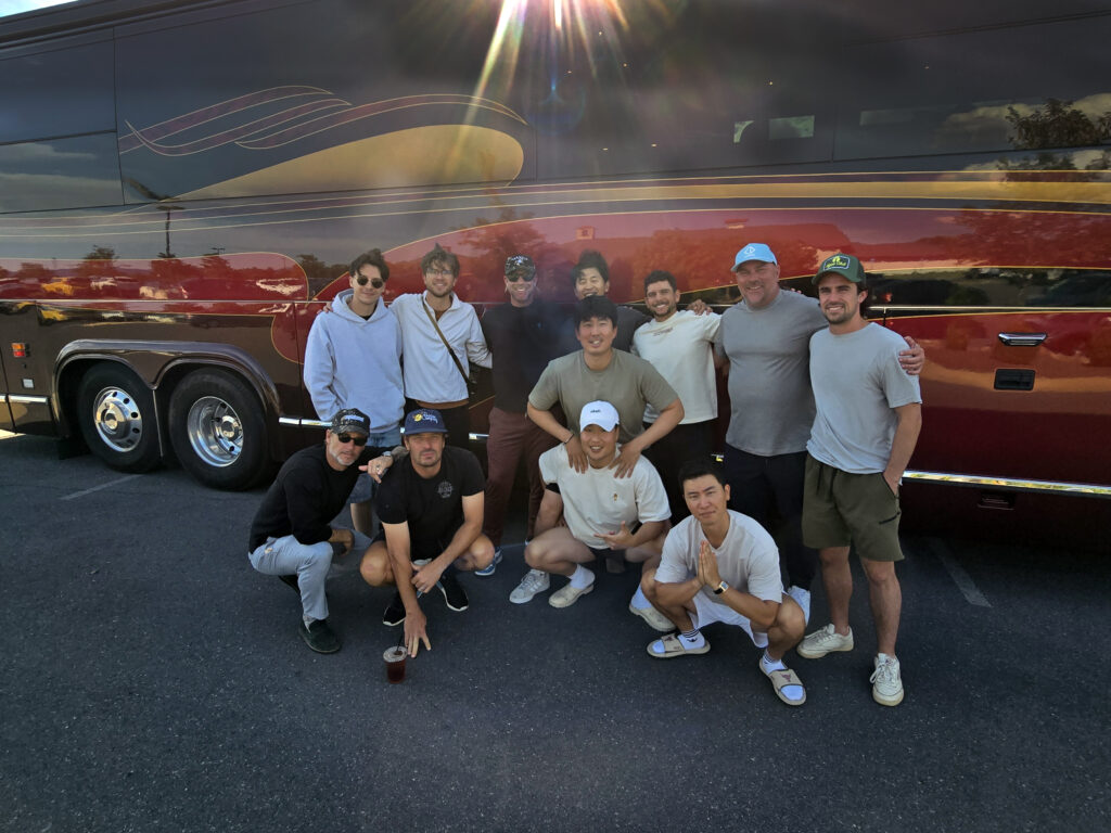 We have also worked with professional golfers who appreciate the convenience of traveling in a luxury motorcoach with a private driver. Last summer, our LiTRV team was contacted by the agency helping to produce the Mitsubishi Diamana Derby, which took place in September 2025. We helped to coordinate travel for Luke Kwon, Taco Golf, Tooms Golf, Sam Huang Min, and Harry Na from Ballyhack, Virginia to the Dormie Club in Pinehurst, North Carolina.